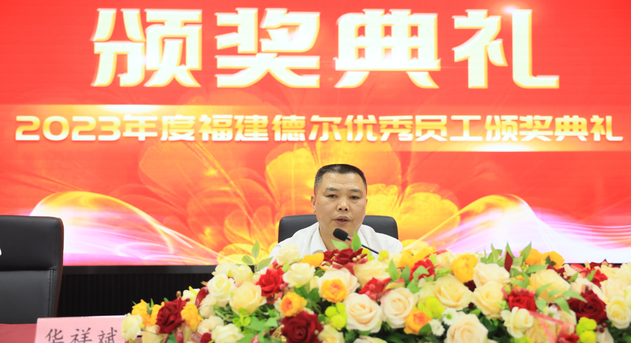 表彰儀式的最后,董事長華祥斌先生作總結(jié)致辭。他感謝所有獲得者在過去一年當中的辛勤奉獻,希望他們在各自的崗位上繼續(xù)發(fā)揮模范帶頭作用,促進安全高效生產(chǎn),為福建德爾發(fā)展賦能,以實際行動在今后的工作中再創(chuàng)佳績。